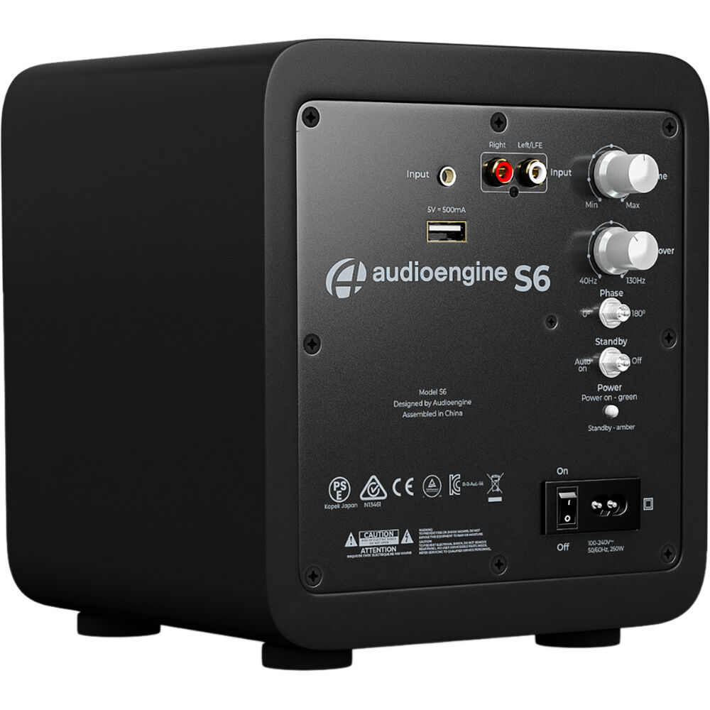 With its highly efficient Class D amplifier and a 6" long throw woofer, the S6 has to be heard to be believed. Audio nerds will be happy to know the S6 boasts a frequency response down to 33Hz in a sealed box design, and with adjustable crossover points between 40 - 130Hz you can dial in exactly the sound you want. The rest of you will be happy to hear it produces bass that's punchy, smooth, and bottom-of-the-sea deep.