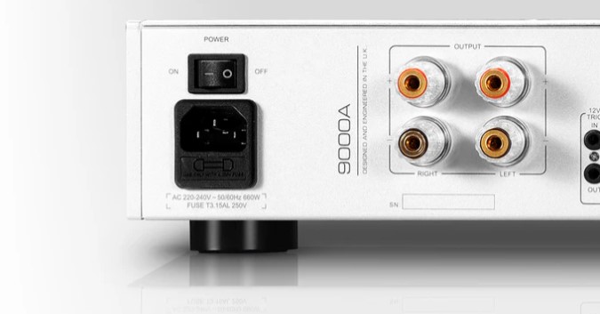 ‘Pre-Power Mode’ disconnects the pre and power amp stages. The allows the 9000A to be used solely as a power amp – for example, connected to an AV processor in a home cinema system. It also enables additional signal processing to be added, by connecting the 9000A’s ‘preamp out’ socket to an external processor, then returning the processor’s output to the amp’s ‘power amp in’ socket, making the most of its gargantuan 100W per channel performance and critical performance characteristic of the 9000A’s pre-section, regardless of what magic the users wants to implement in between!