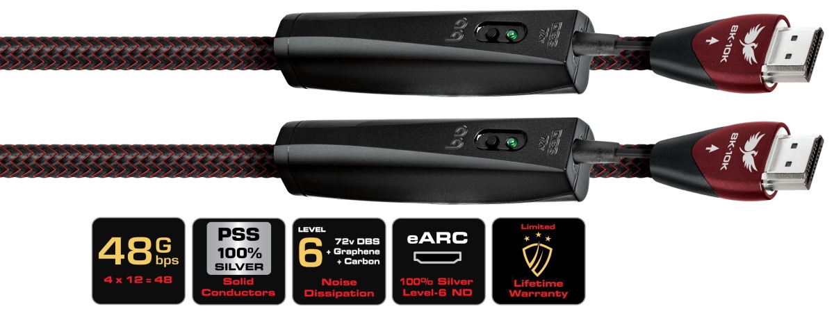AudioQuest FireBird 48 HDMI cables use AQ’s best conductor metal—100% Solid Perfect-Surface Silver (PSS)—to defeat both electrical and magnetic strand-to-strand interaction.