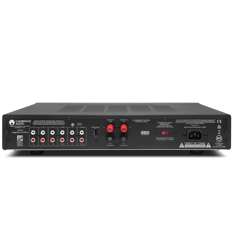 AXA35 的每個頻道擁有 35 瓦特功率、一個為唱盤愛好者而設的整合可動磁鐵唱頭放大器、白色顯示螢幕,以及用於私人聆聽的 ¼ 吋耳機插座。