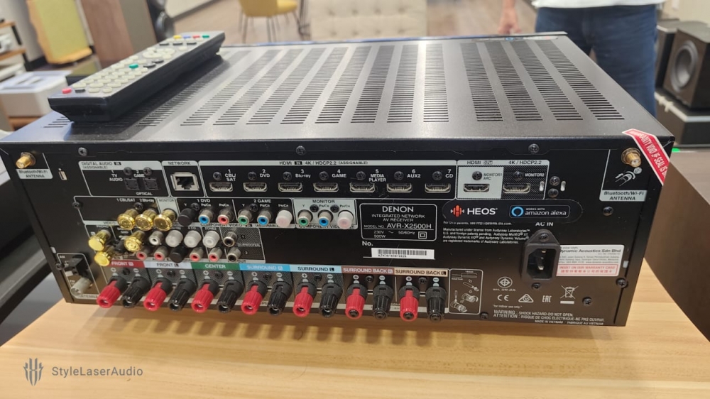 7The AVR-X2500H features Dolby Atmos and DTS:X, the latest video technologies; 4K Ultra HD, Dolby Vision™, HDR10 and HLG; and 8 HDMI in/2 out with HDCP 2.2 support on all ports. Stream Spotify®, Deezer, Tidal and more with HEOS built-in. Features Amazon Alexa voice compatibility. The award-winning Denon Setup Assistant provides a seamless setup experience.