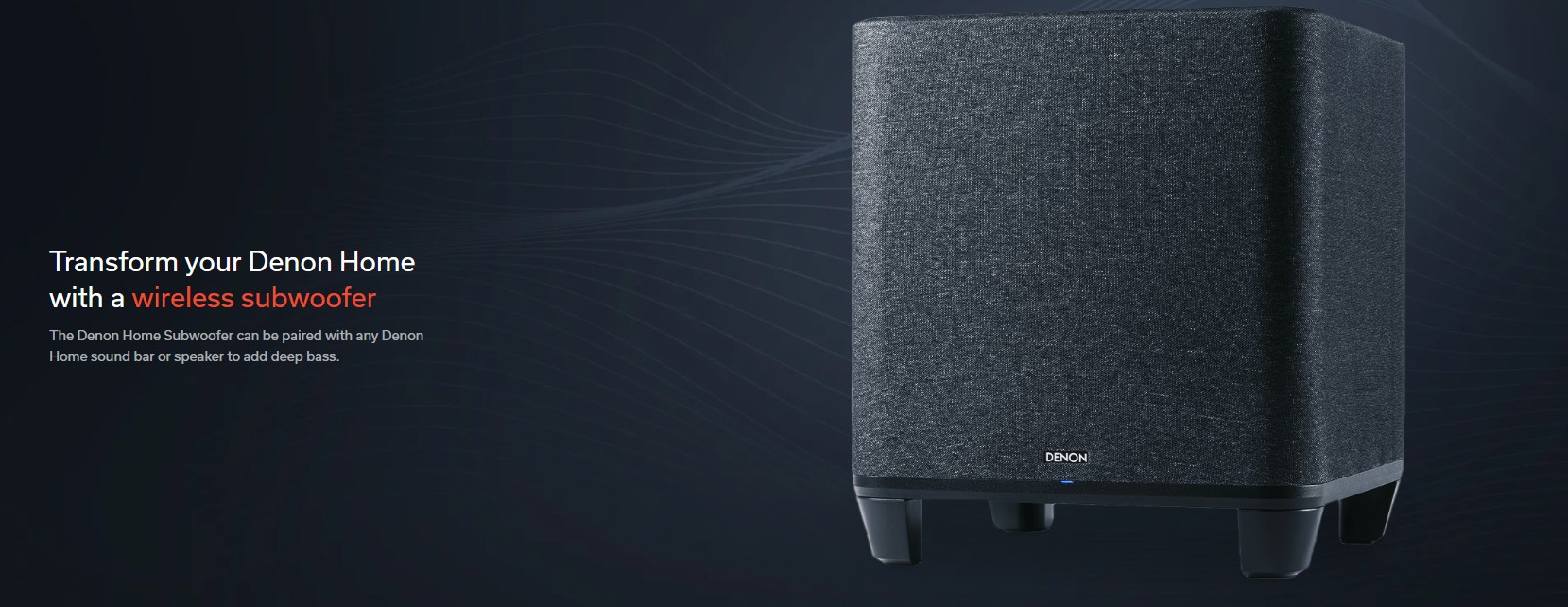 The Denon Home Subwoofer can be combined with any Denon Home sound bar and Denon Home speaker to add deep bass for home home theatre and music.