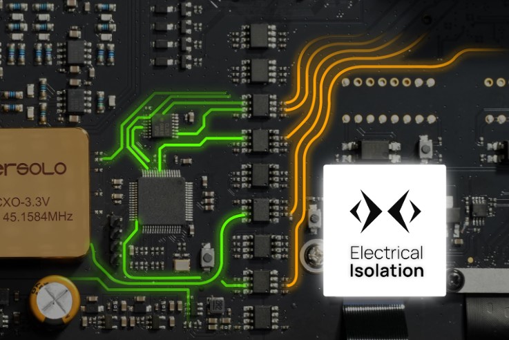 By incorporating an advanced electrical isolation circuit, the DMP-A10 minimizes interference from high-noise power sources and grounding loop issues when connecting external DACs and USB devices. Utilizing iCoupler ® technology, it transmits both the clock signal and data to the isolated side in the correct time order and then resynchronizes them to maintain consistency. This ensures that USB signals are transmitted with high fidelity, reducing jitter and maintaining signal accuracy.