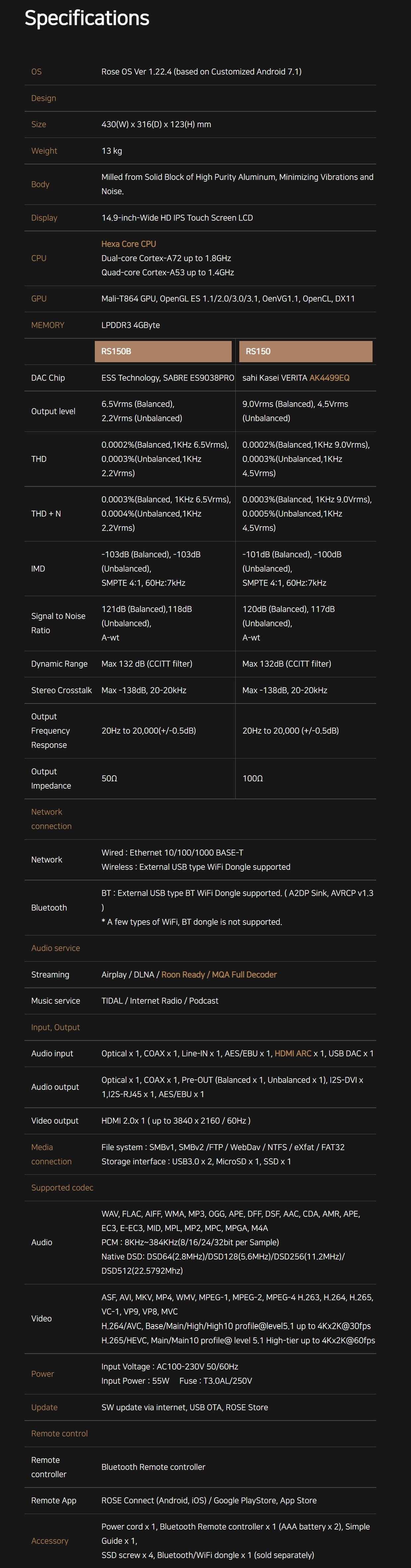 Hifi ROSE RS150B High Performance Network Streamer Made In Korea