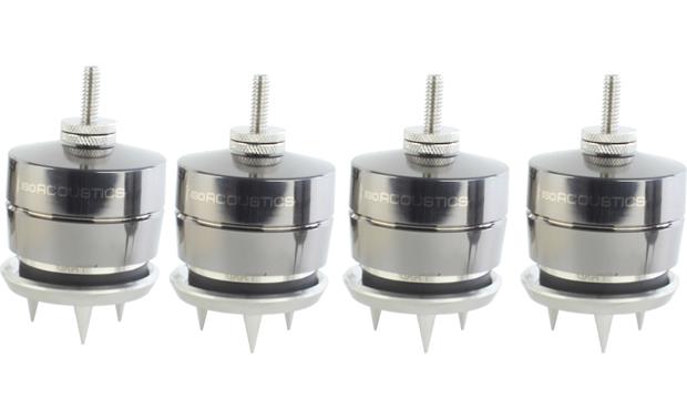 IsoAcoustics carpet spikes enable the IsoAcoustics GAIA feet to be used in areas that have a thick carpet. The large spikes will then sit on the surface below carpet and give a firm flat surface for the GAIA feet to sit on and perform to their best.