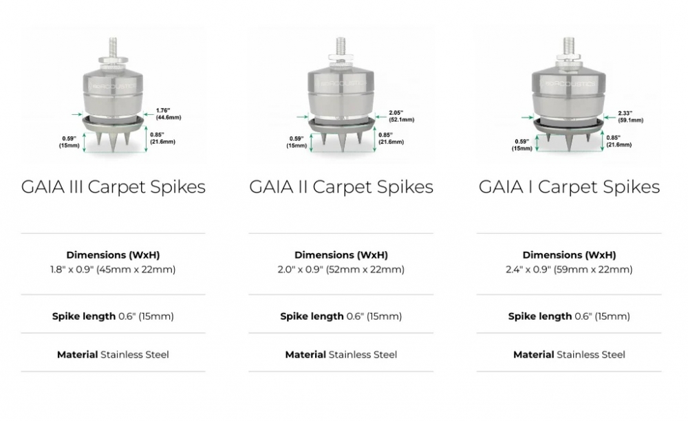 By using the carpet spikes, everyone can take advantage of the benefits of the IsoAcoustics GAIA feet.