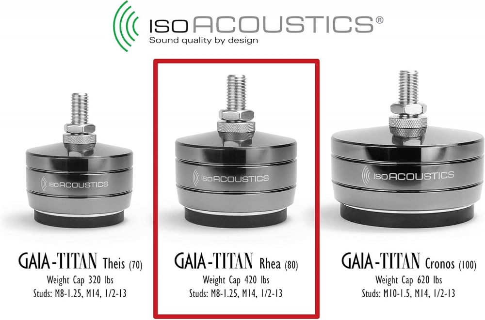 SKU: IsoAcoustics GAIA Titan RheaFor floor standing speakers and subwoofers weighing 420 lbs (190KG) or less.