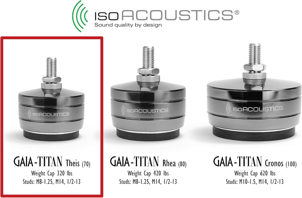 SKU: IsoAcoustics GAIA Titan TheisFor floor standing speakers and subwoofers weighing 320 lbs (145KG) or less.
