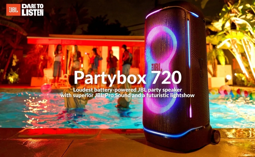 We bring peak party energy wherever we go with the JBL PartyBox 720. Superior JBL Pro Sound, deep bass that hits just right, and a lightshow that goes all in—starry lights, flowing trails, and pulsing strobes. With smooth wheels, a sturdy handle, and a splashproof design, we’re rolling the party everywhere we go.