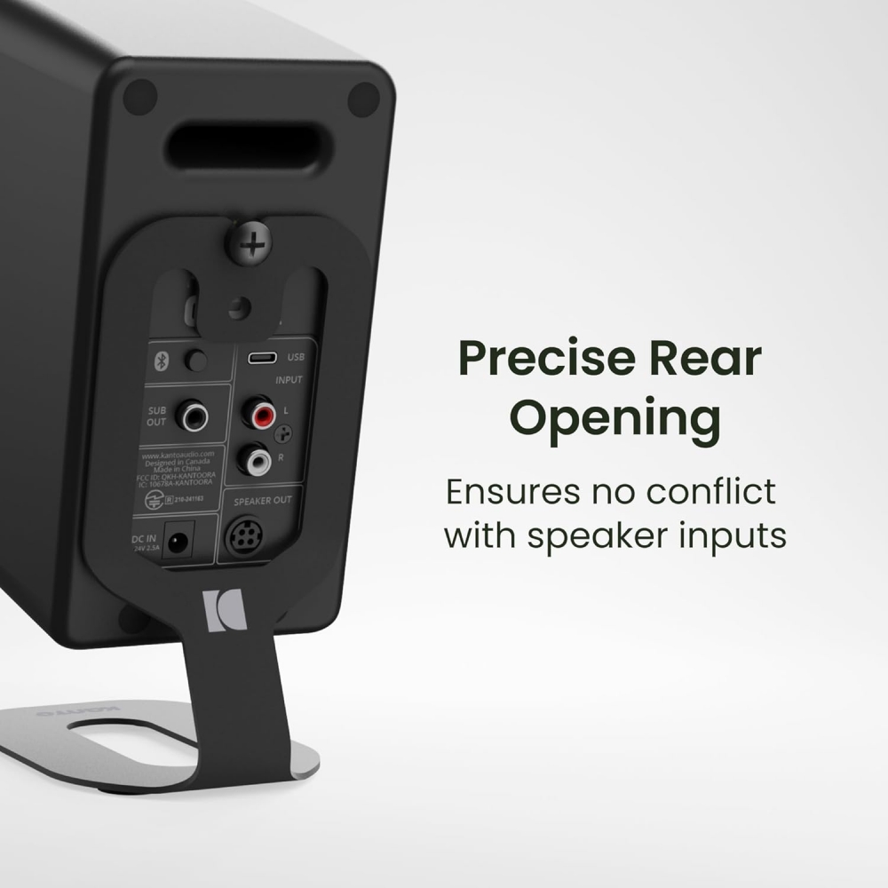 Attaching seamlessly with the rear 1/4“-20 screw, SU2 showcase the speaker design while raising and aligning the speakers with your ears for optimal acoustic clarity and a superior listening experience while maintaining easy access to all rear inputs.