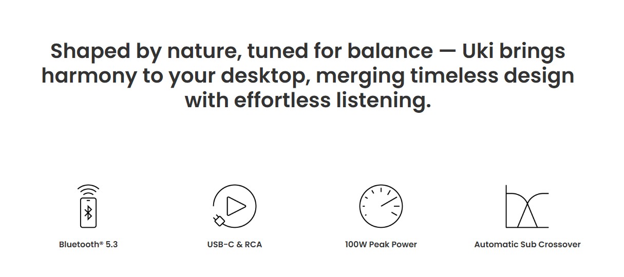 With a compact, playful form, Uki is thoughtfully designed to bring vibrant sound and ease of use to your desktop or small spaces.