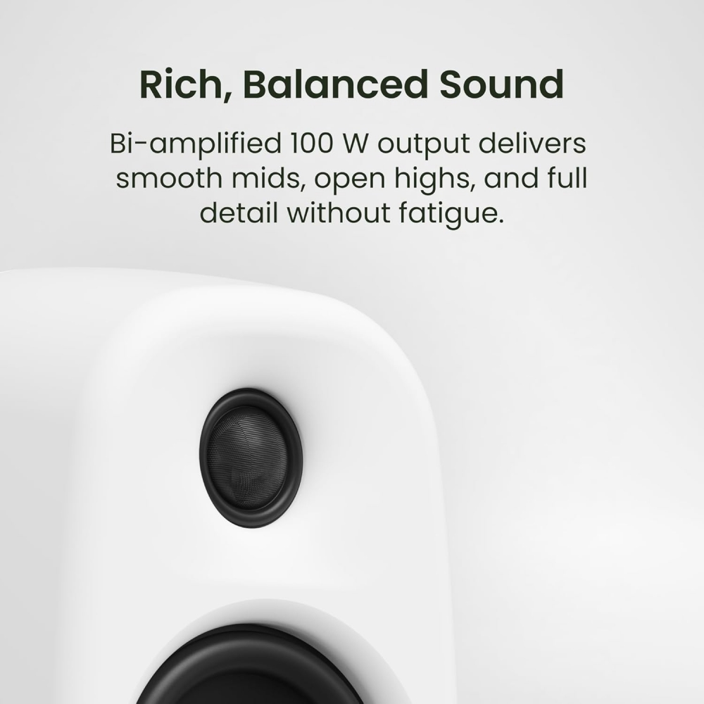 Uki delivers 100 watts of bi-amplified power through its 3” woofers and ¾” silk-dome tweeters, producing smooth mids, open highs, and fatigue-free detail.