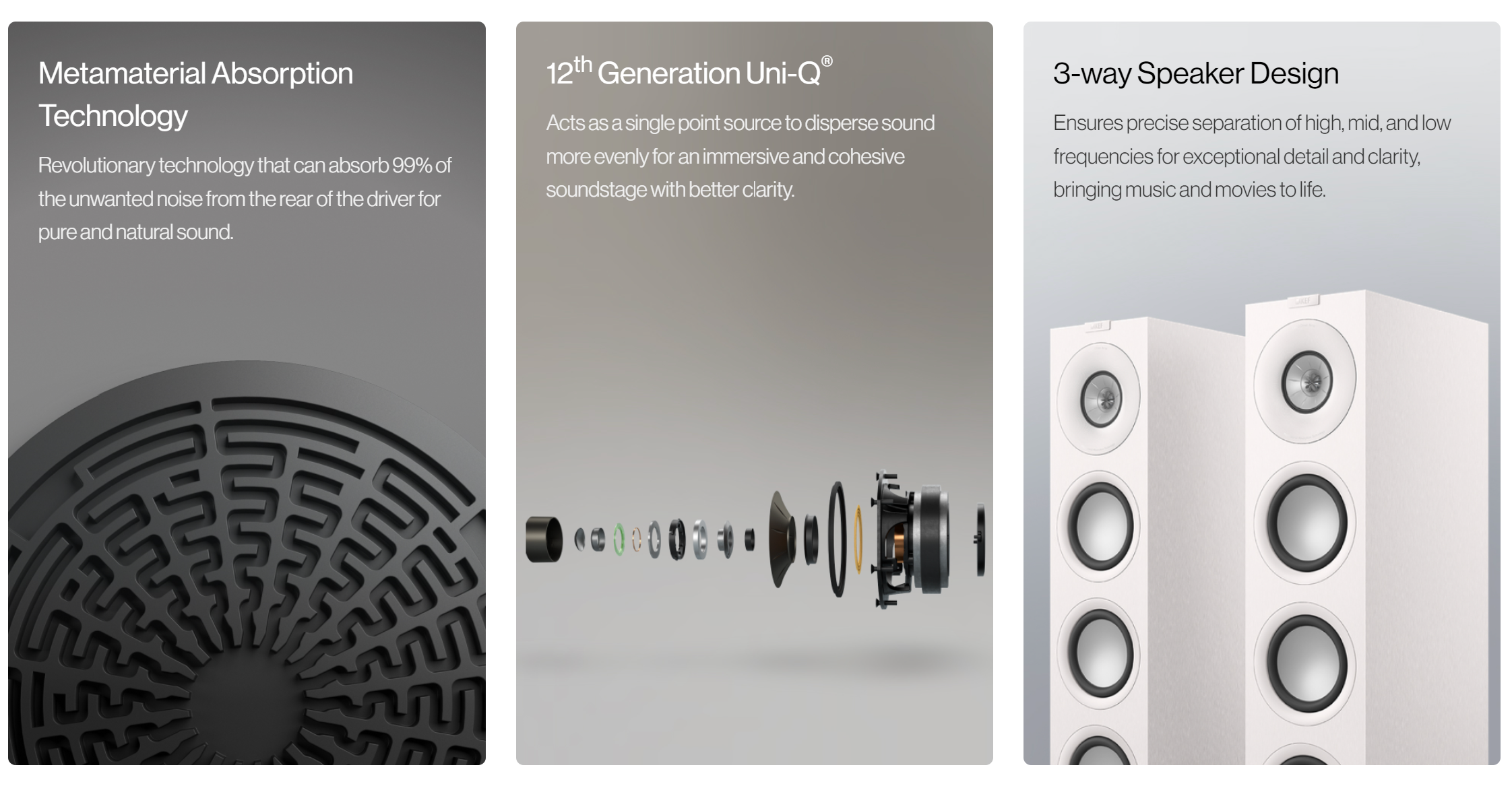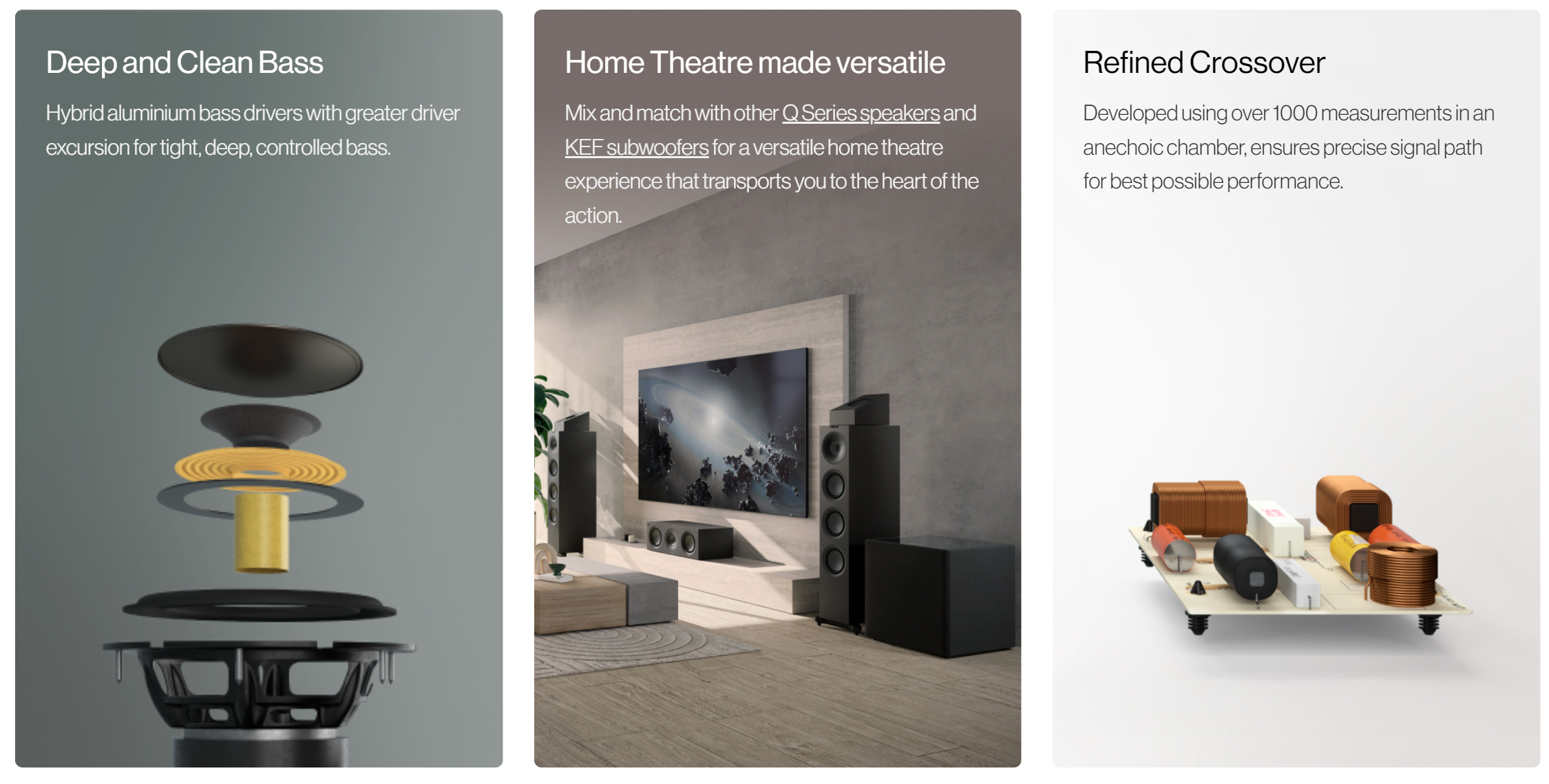 Equipped with innovative technology from our premium ranges, the Q Series now features Metamaterial Absorption Technology (MAT™) and the 12th generation Uni-Q driver array. This ensures exceptional sound quality, making it an ideal choice for both stereo and home theatre setups.