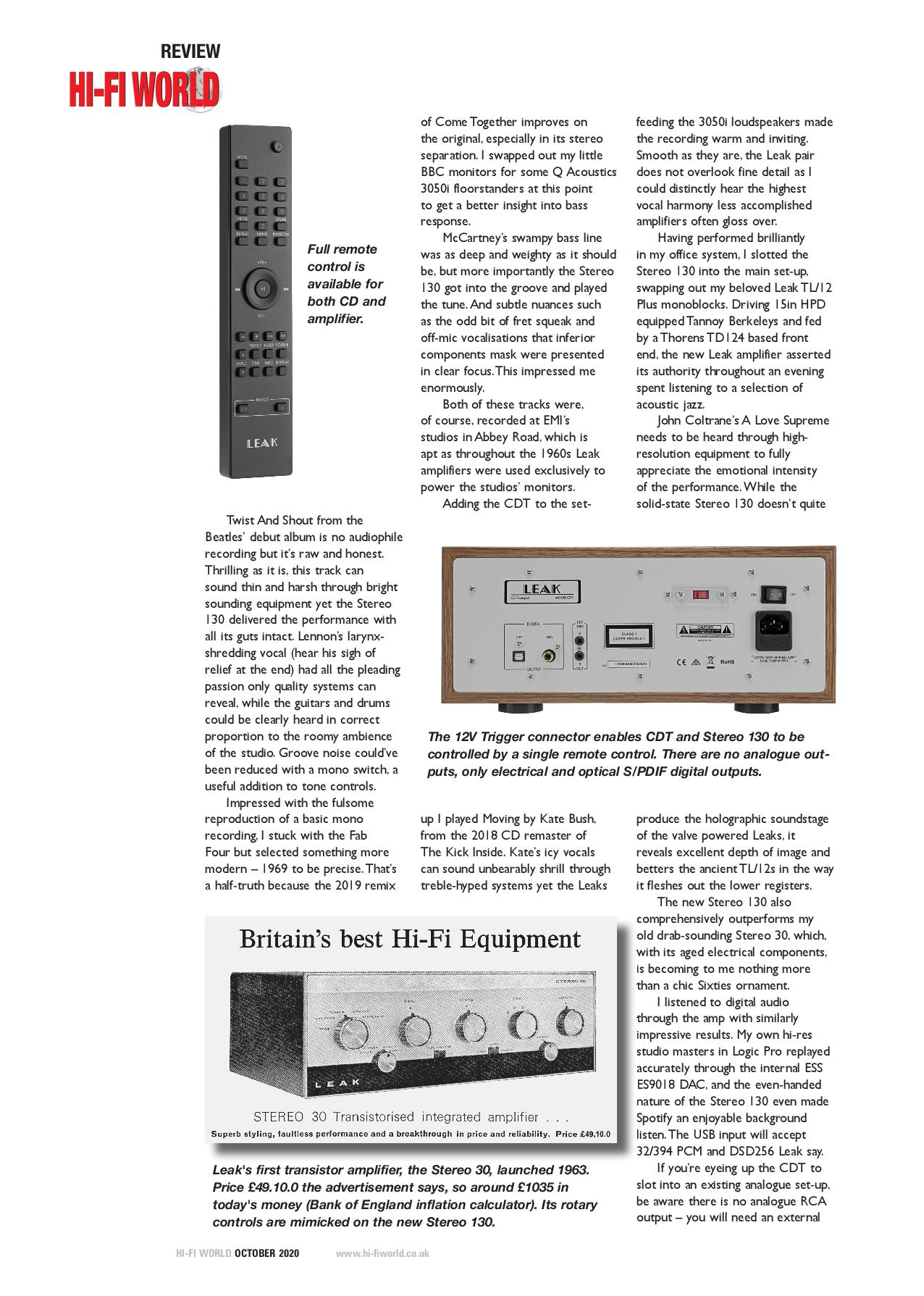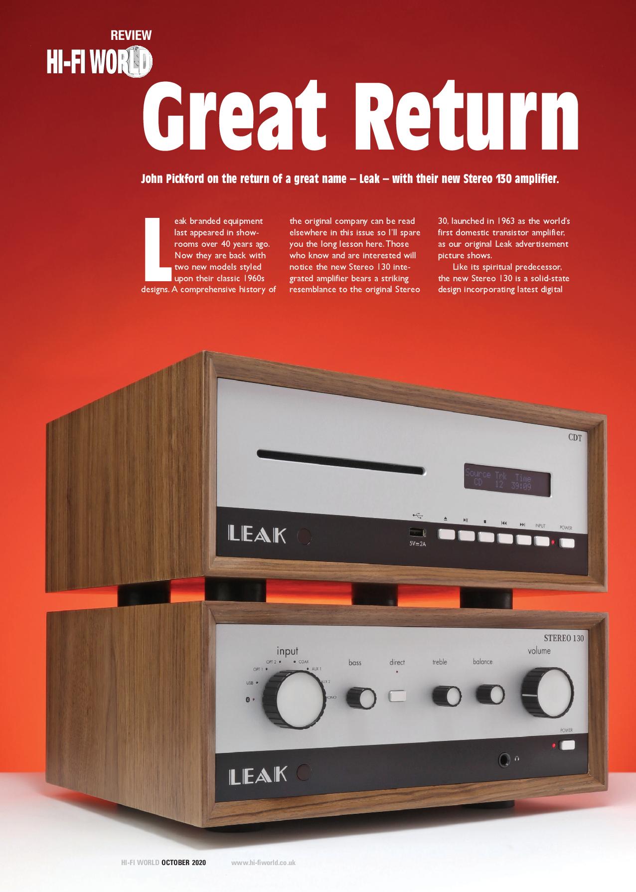 如今,在2020年,LEAK運用最新技術提供了價格合理的集成擴音器STEREO 130,其功能齊全,可滿足從黑膠唱片到數字流媒體的現代音樂愛好者的需求。
