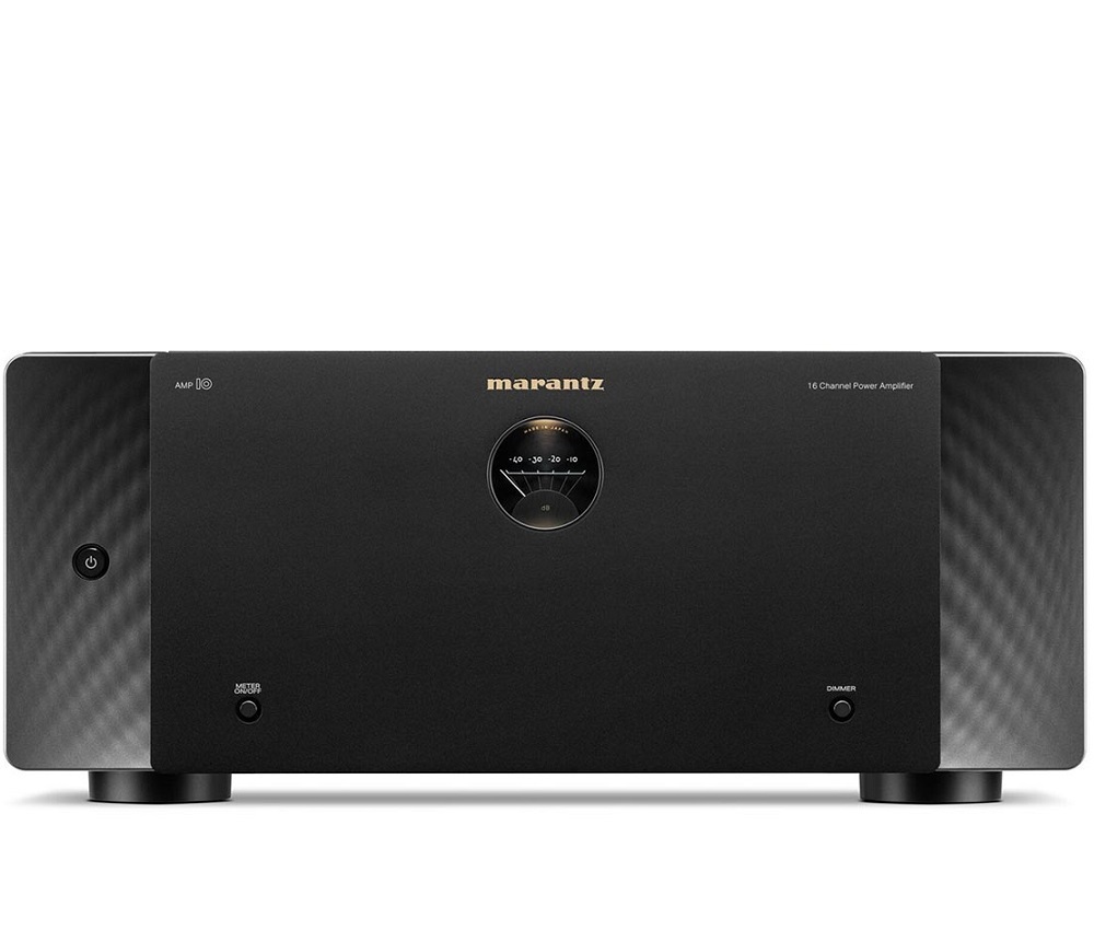 The Marantz AMP 10 is an absolute beast of an amplifier that's built to impress home theatre lovers. It delivers clean, robust power into 16 channels, which can be configured for an expansive 15.2 surround-sound setup, or a muscular bi-amped 7.1 system. The amp's beefy toroidal transformer, Hyper Dynamic Amplifier Module, and current feedback amplification offer impressive accuracy and control under high-drive conditions.