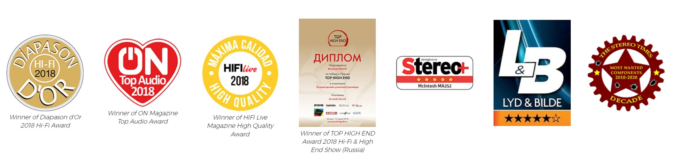 "The McIntosh MA252 is not only a time machine that allows you to travel 30 or 50 years ago [when listening to classic albums], but it also takes you to the future: you spend from morning to afternoon or from evening to night with it in what seems like an instant. It sonically fills 25 square meters [270 square feet], does its job and disappears from the room." Presented with HIFI Live Magazine High Quality Award. - HIFI Live Magazine