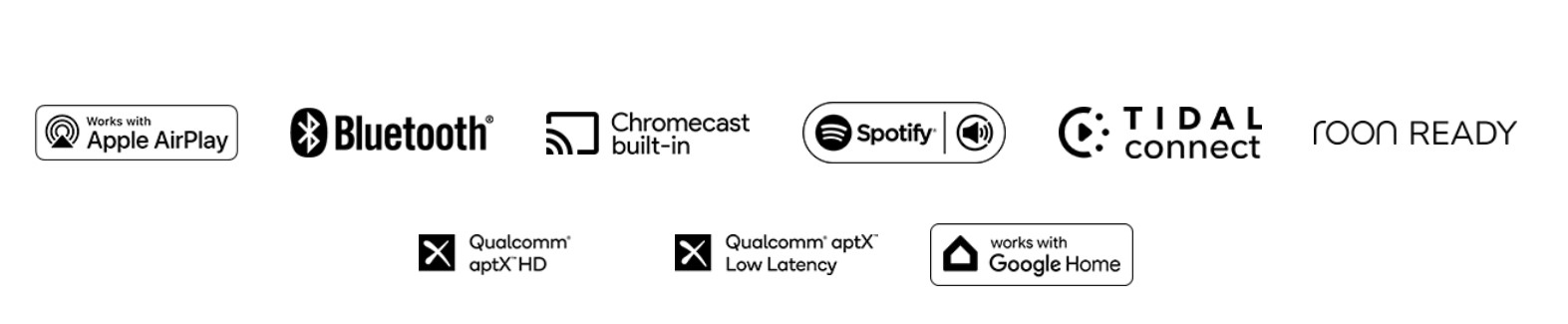 Built-in casting: Spotify Connect, TIDAL Connect, Apple AirPlay 2, Bluetooth, Chromecast, Roon Ready