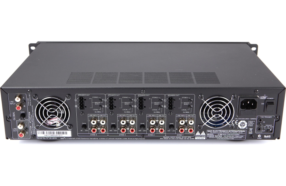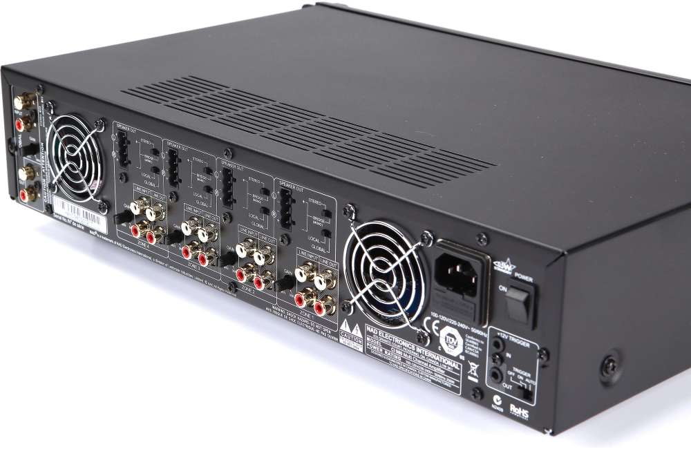 - Eight channels of clean, low distortion power set up in four stereo zone configuration