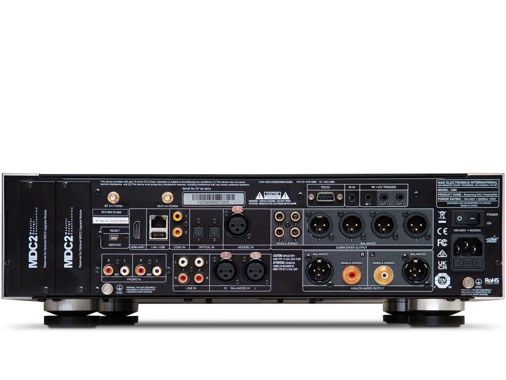 The Masters M66 represents the pinnacle of what is technically achievable in a two-channel preamplifier today, and will maintain its technological leadership for decades to come. On the rear panel are two expansion slots that support MDC2, the latest generation of NAD’s Modular Design Construction future-proofing technology. As technology evolves, this will enable M66 owners to add new capabilities simply by inserting an MDC2 module into one of the slots.