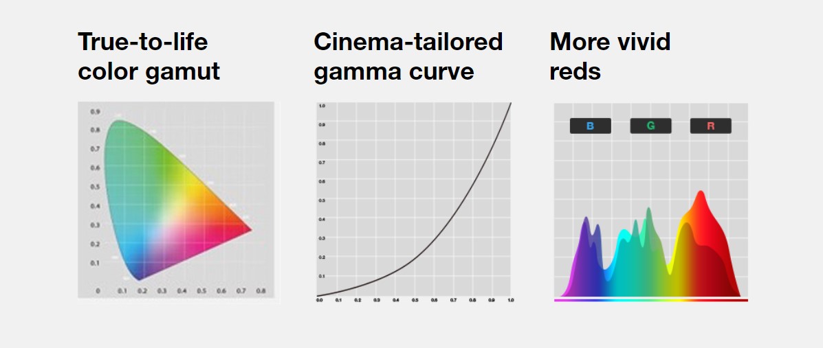 With the touch of a button, switch to “Cinema” display mode and watch as colors become true-to-life thanks to the enhanced color gamut and cinema-tailored gamma curve. Reds will be enhanced to provide more natural skin tones, better color saturation and an overall more enjoyable viewing experience.