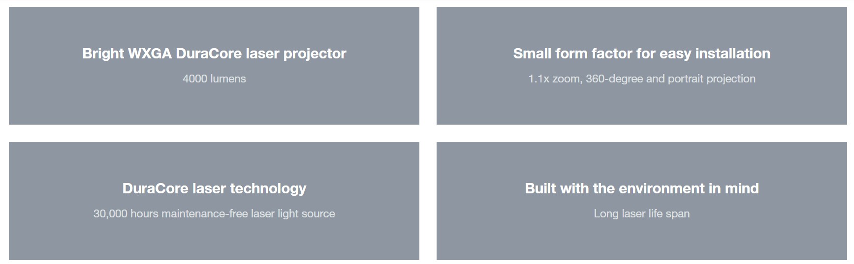Industry leading lifetime is achieved using Optoma’s DuraCore technology. Implementing advanced laser diode cooling techniques and an innovative dust resistant design.
