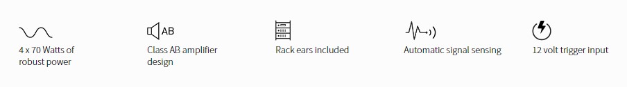 The RMB-1504 Class AB 4-channel amplifier delivers 70 watts per channel into 8 ohms and 115 watts into 4 ohm loads with the ongoing commitment of performance without compromise building on over 55 years of Rotel amplifier engineering, design and manufacturing experience. This amplifier provides power and refinement for object based overhead speakers in home theater installations and the demanding drive required for custom installation and multi-room audio solutions.