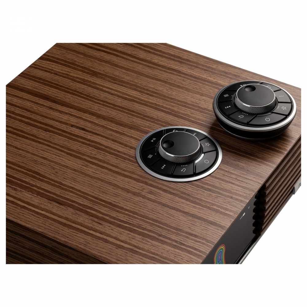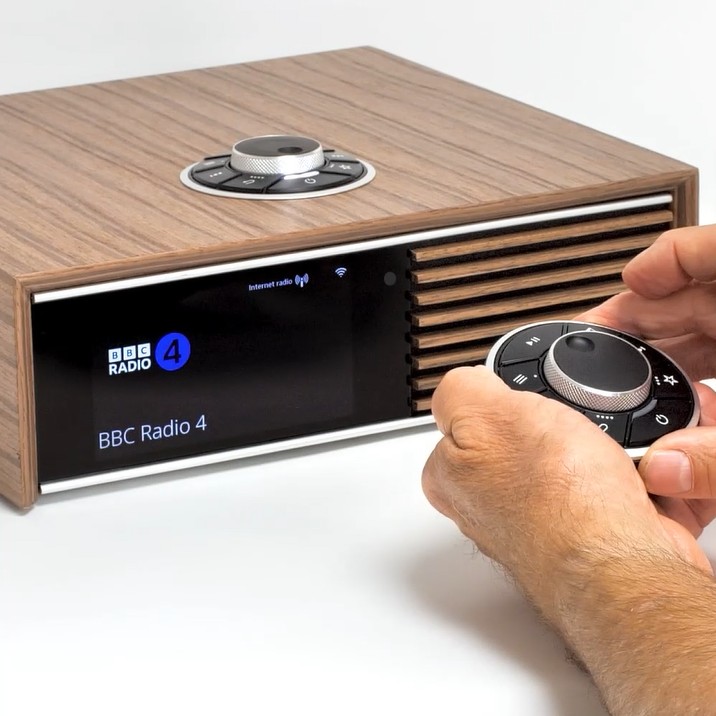 Our RotoDial controller has been a distinctive part of our products since 2006. For 100 Series we have refined its design further and with tactile soft touch buttons and a precisely weighted control dial, it makes operating R610 a delight. Enhancing the operating experience is the crisp 5" TFT display which confirms every command, as well as showing album and station artwork in perfect clarity. Also included is a matching rechargeable remote. Bluetooth connectivity means that aiming is not required, so you can relax and fully control R610 from afar.