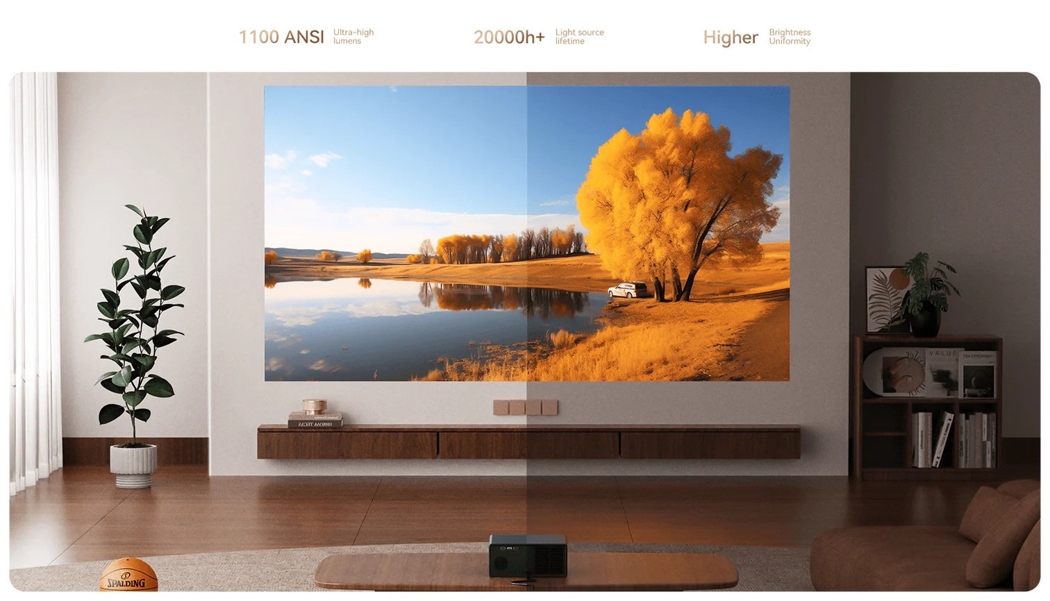 - 1100 ANSI High Lumens: Brilliant brightness for daytime viewing, outperforming standard projectors.