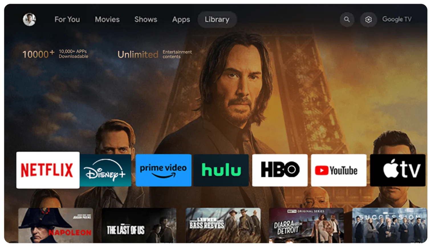 Everything you stream is all on one screen. Easy access to more than 10,000 apps