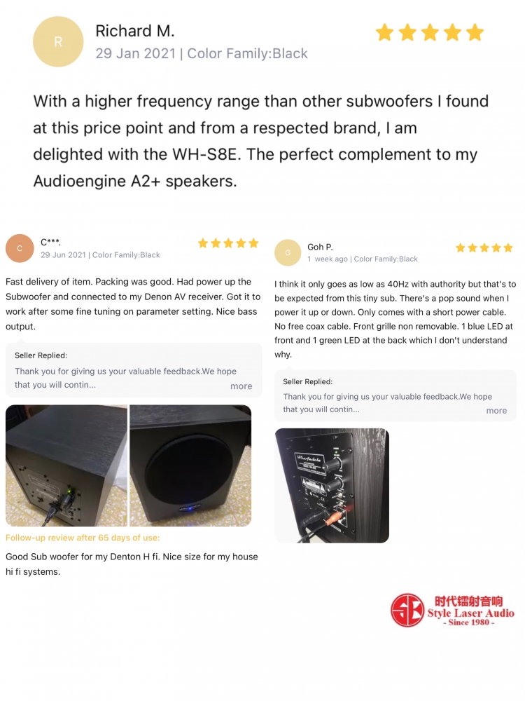 The WH-S8E Subwoofer is an excellent choice to add to your home cinema surround sound system. Whether its an upgrade of an existing subwoofer or a new addition to your home cinema system, you can be sure of a stunning, fully featured system. This super powerful WH-S10E subwoofer is specifically designed to provide an immersive listening experience from both music and movies.