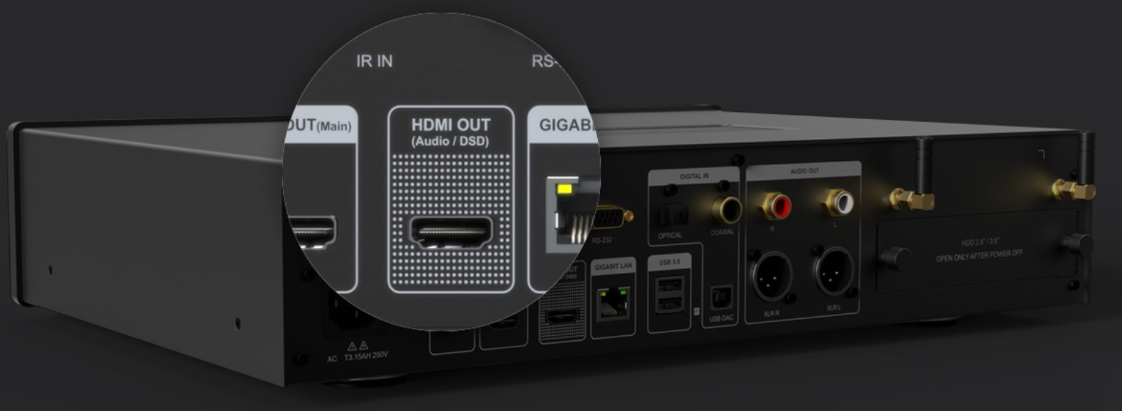 Dual HDMI audio and video separation output, multi-channel DSD (2.0/5.1CH) playback and DSD Native output.