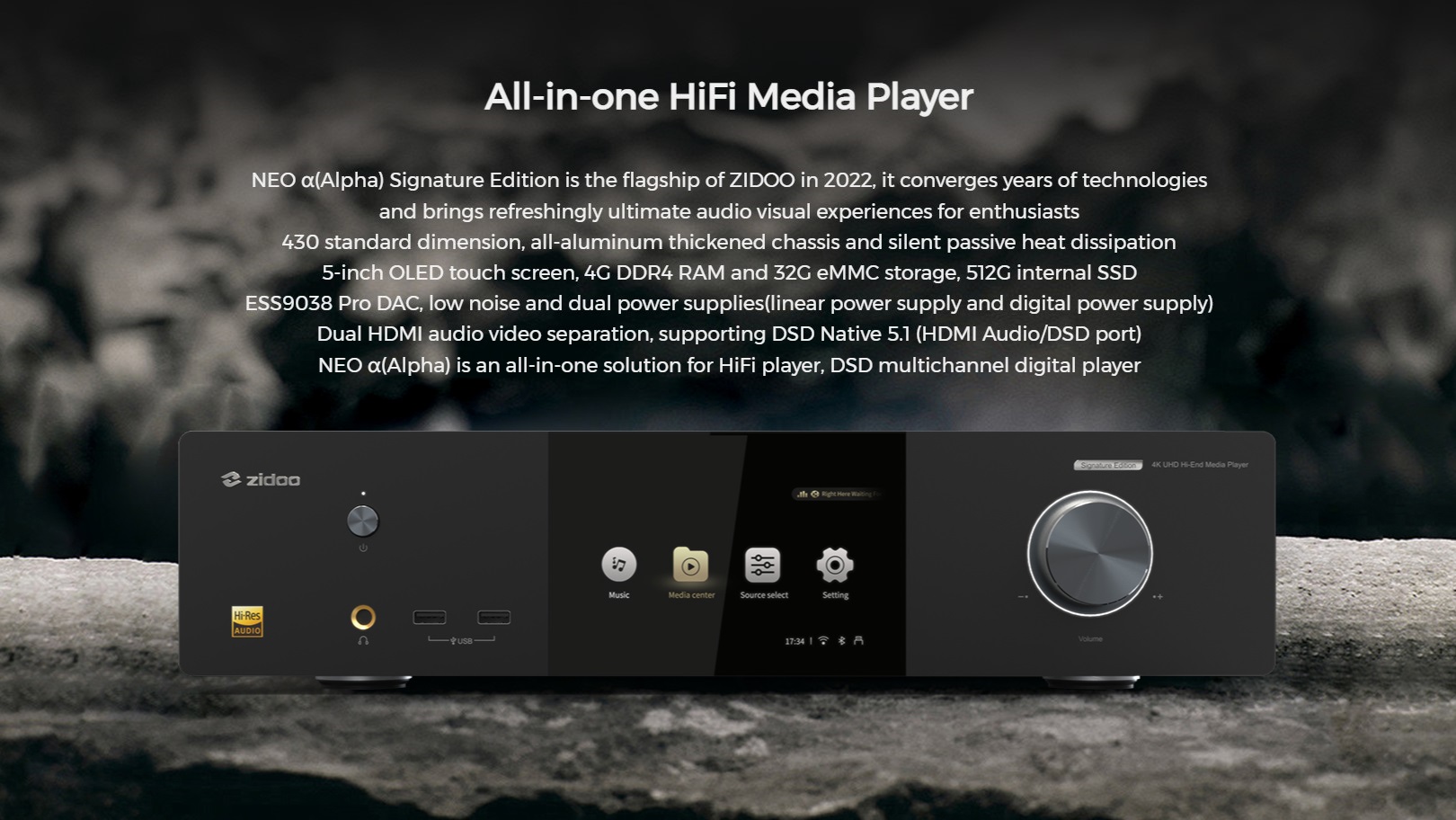 NEO α(Alpha) can play music from different storage devices like hard drive/computer/NAS/network disk