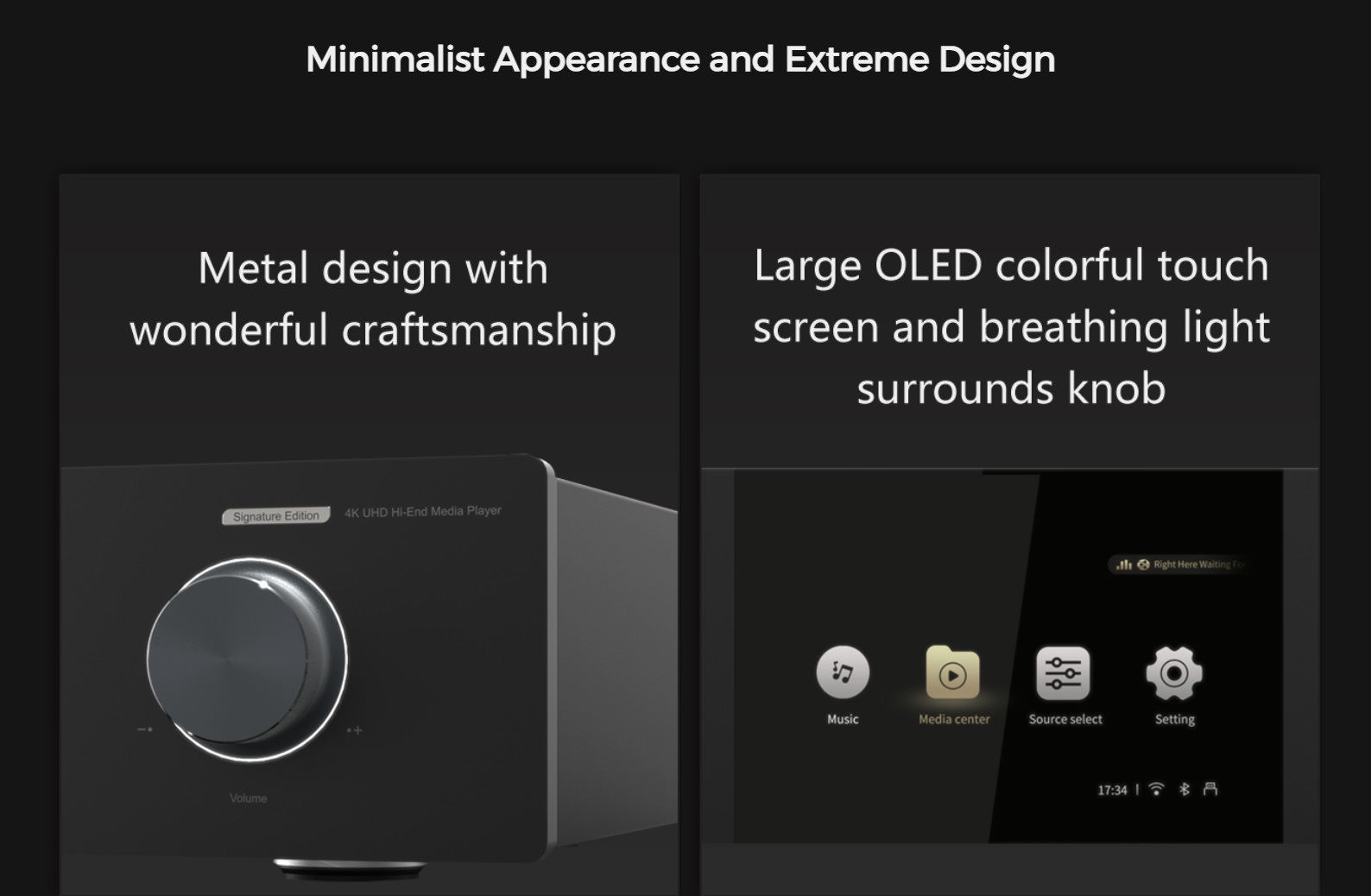 5-inch OLED high-definition touch screen will display general settings, music playback status and touch control.