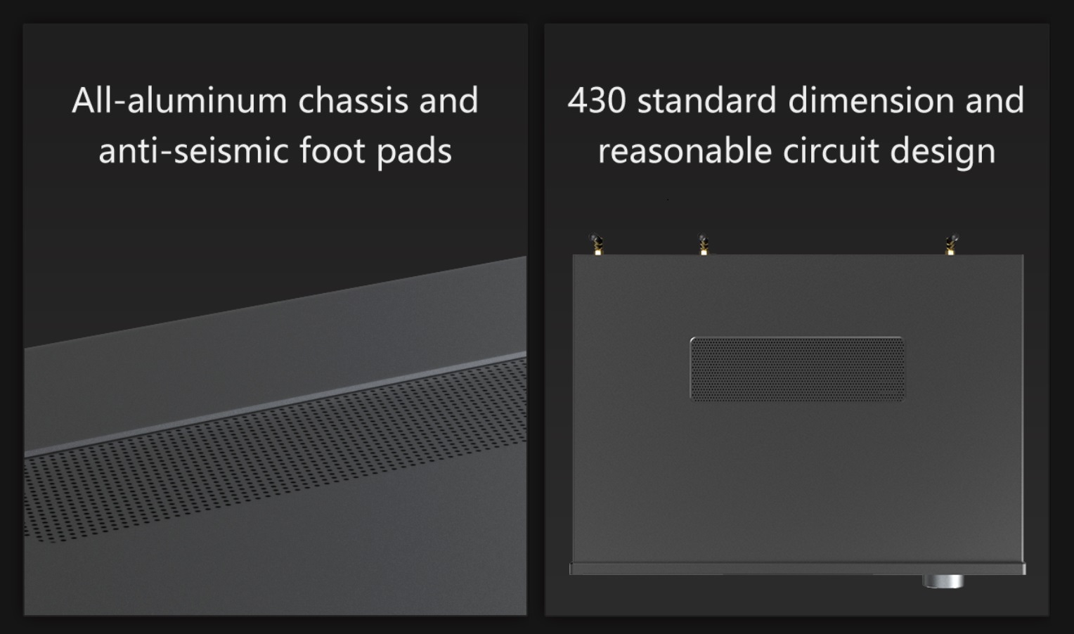 430 standard dimension, excellent texture with all-aluminum alloy reinforced chassis and shockproof foot pad.