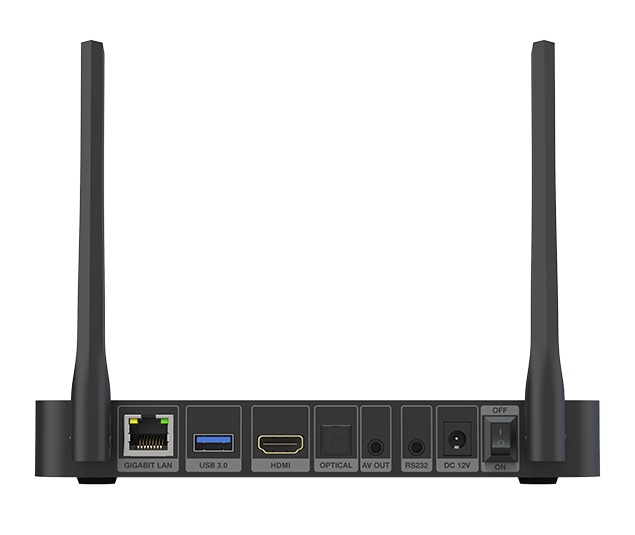 3.5mm AV OUT * 1 SPDIF(2CH,5.1CH) * 1 3.5mm RS232 * 1 External high-gain antenna * 2